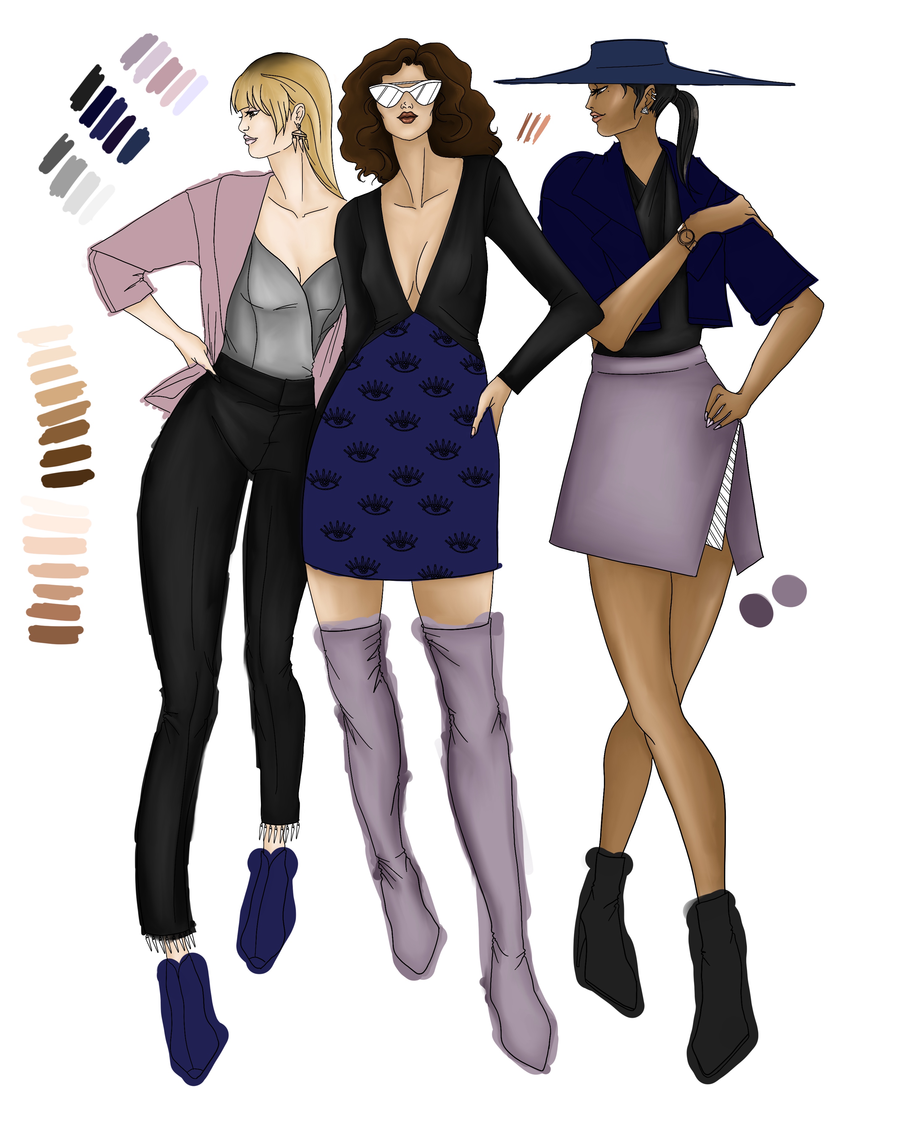 In progress and detailed finished works using procreate and illustrator or photoshop for finishings.