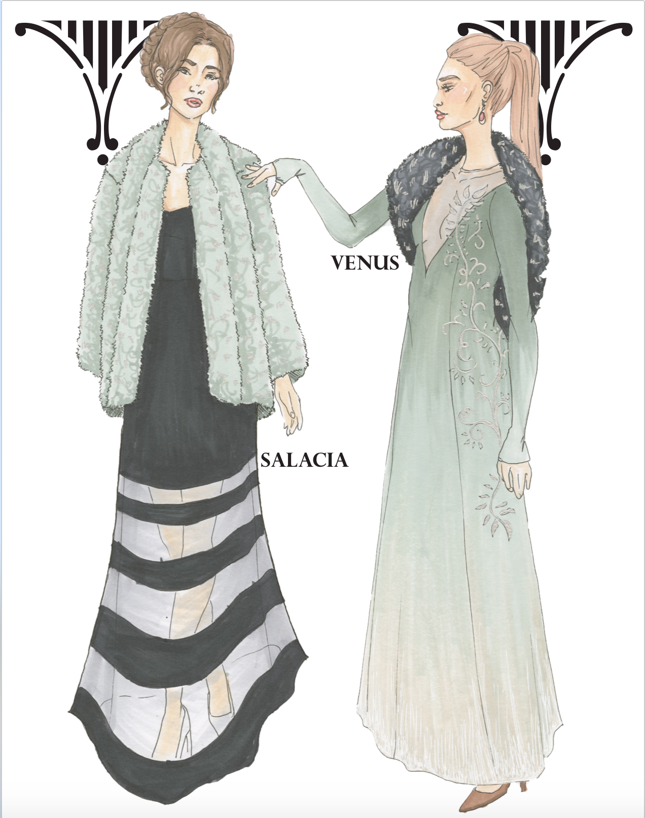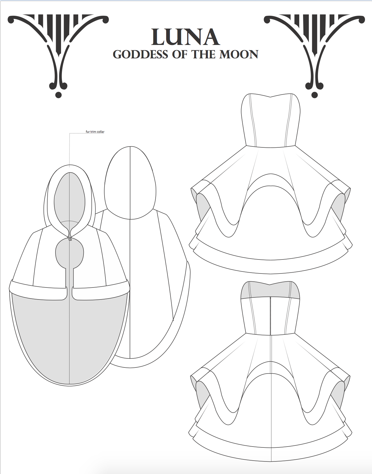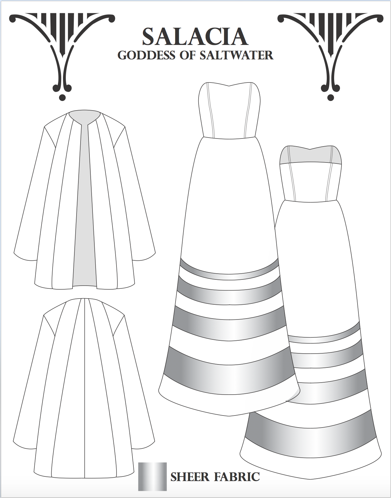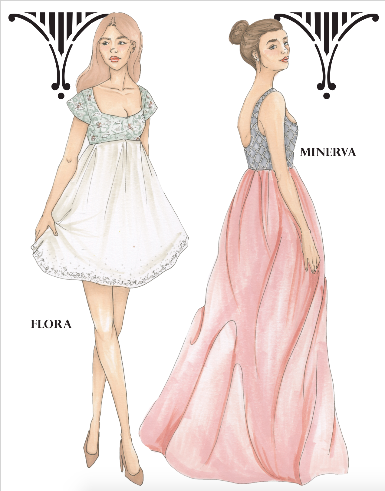 Inspired by my own personal photos of Italian architecture during my time in Italy (including Florence, Rome, and Pisa). Each ensemble is named and inspired after a Roman Goddess. This group is a technical project and required spec sheets and measurements for three garments.