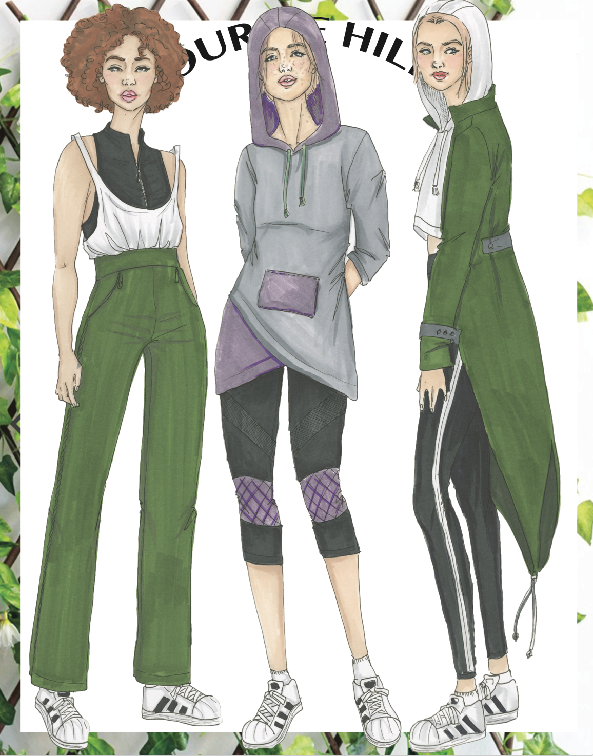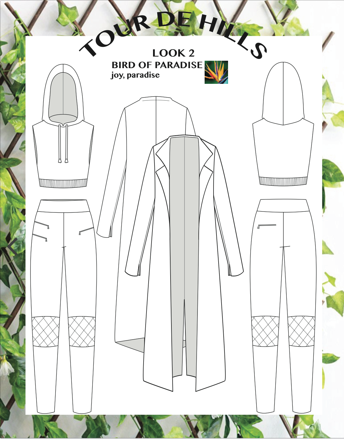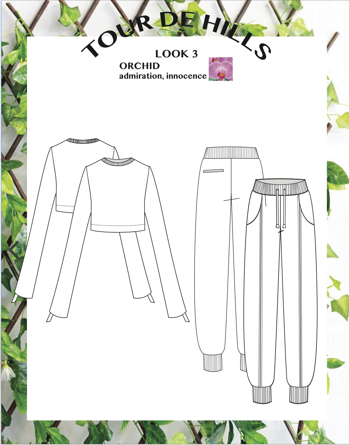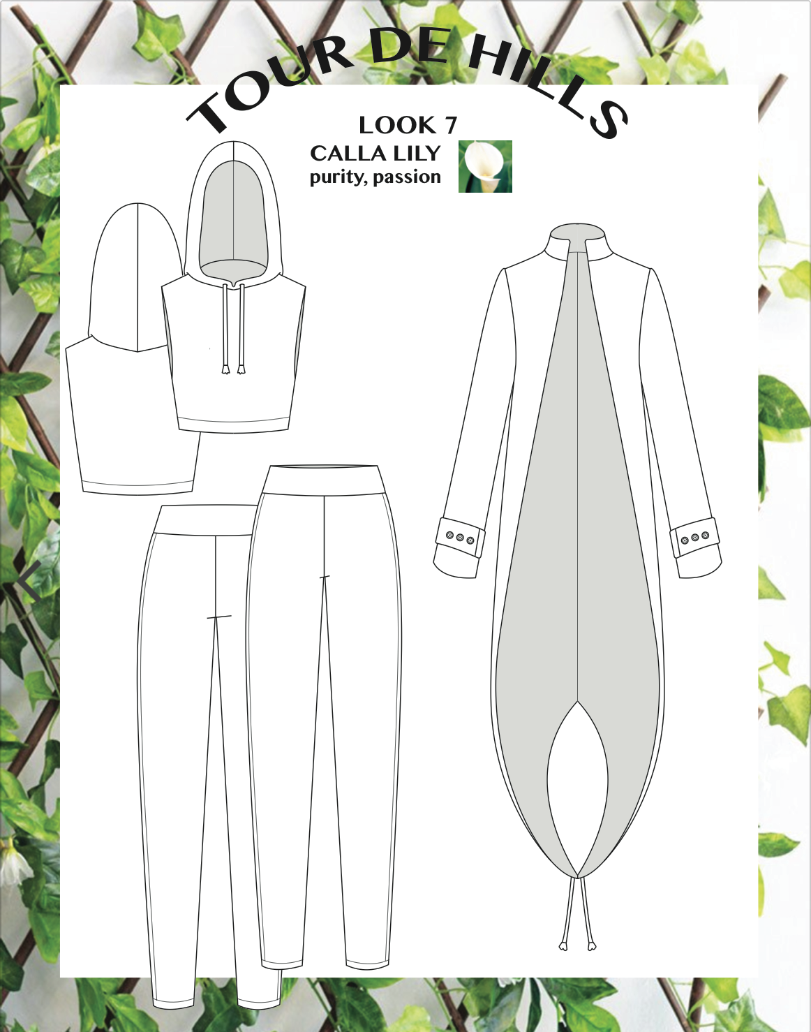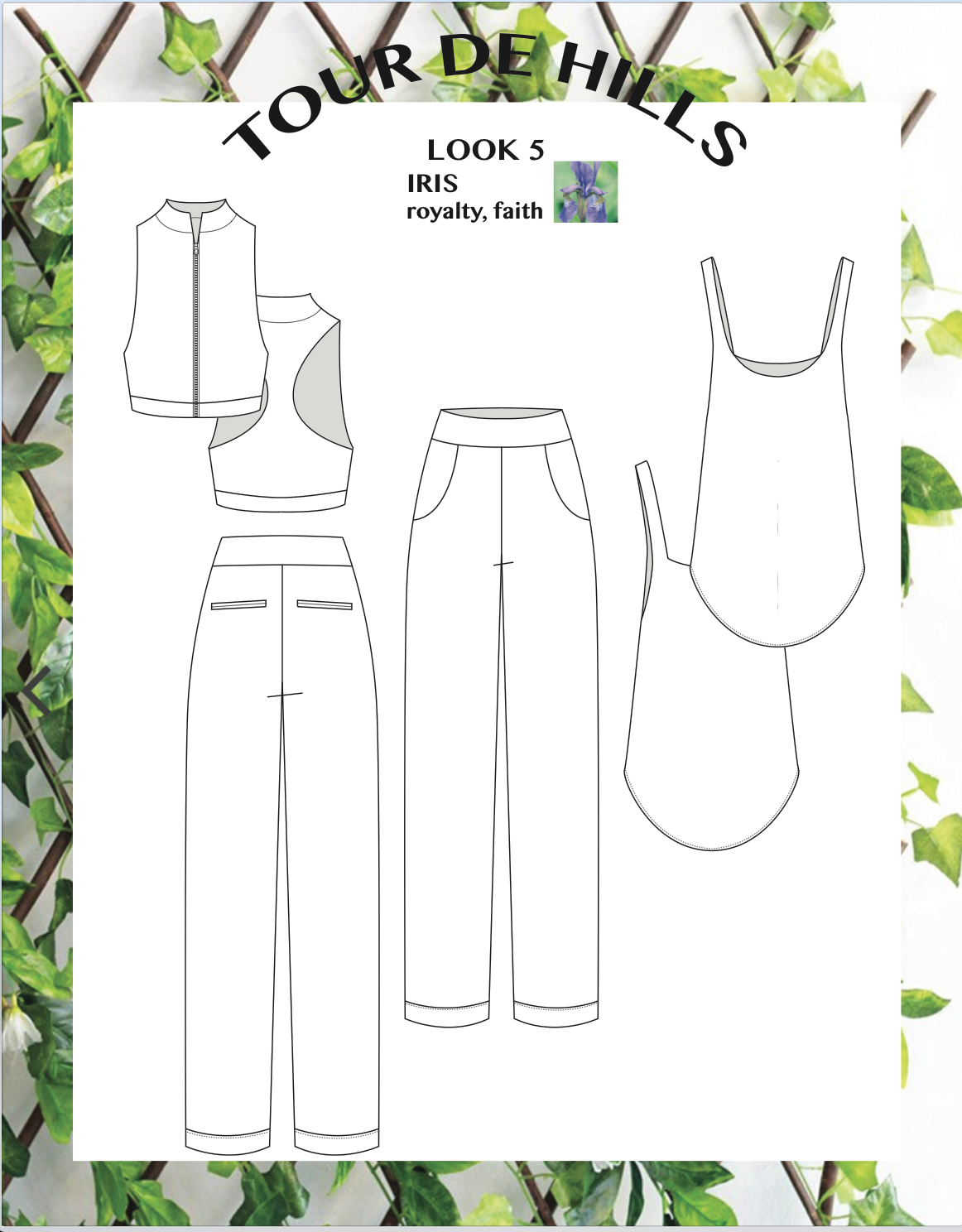 Inspired by mother nature and it’s ability to overgrow and breathing in a life of greenery. Each ensemble is named a garden flower and has it’s meaning. This group includes technical flats and illustrations based off my mood board, colors, and fabrics.